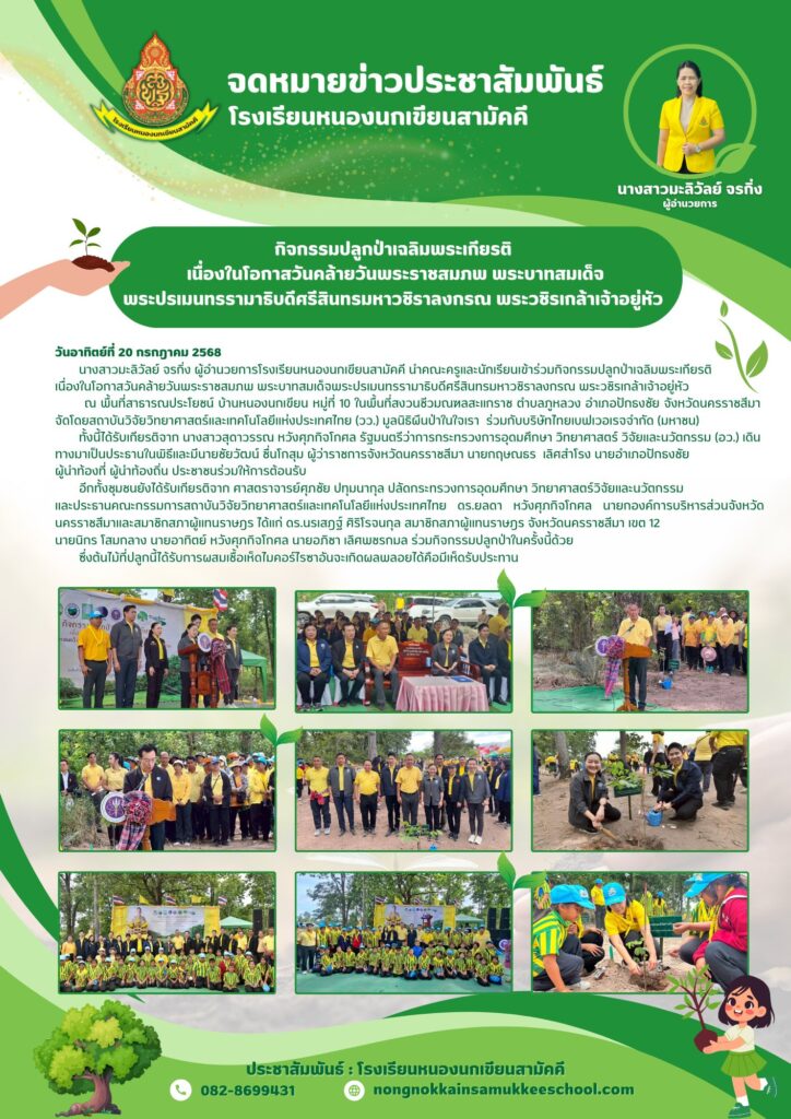 นางสาวมะลิวัลย์ จรกิ่ง ผู้อำนวยการโรงเรียนหนองนกเขียนสามัคคี นำคณะครูและนักเรียนเข้าร่วมกิจกรรมปลูกป่าเฉลิมพระเกียรติ